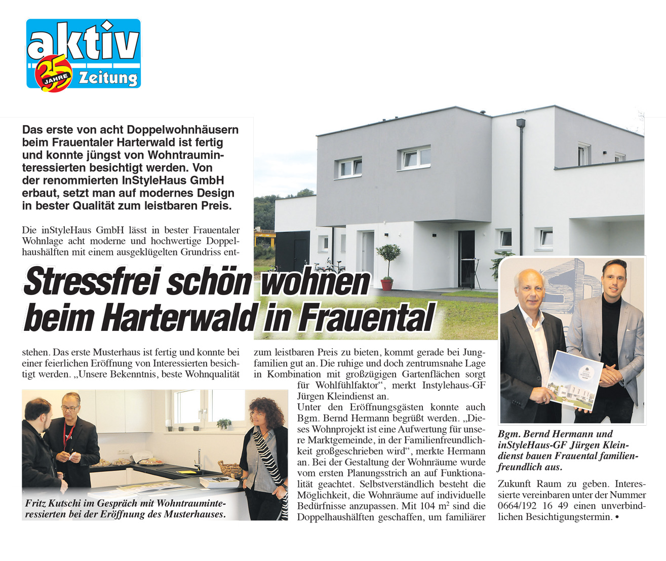 weiterlesenDas erste von acht Doppelwohnhausern beim Frauental Harterwald ist fertig…