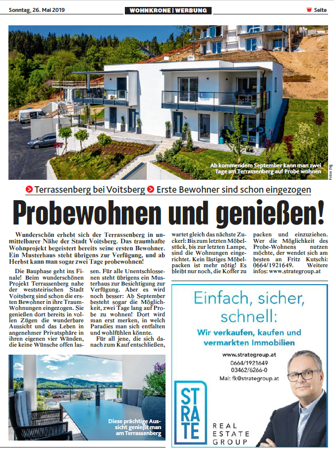 weiterlesenWunderschön erhebt sich der Terrassenberg unmittelbarer Nähe der Stadt Voitsberg. Das traumhafte Wohnprojekt begeistert seine ersten Bewohner. Ein Musterhaus steht übrigens zur Verfügung, und ab Herbst kann man sogar zwei Tage probewohnen!